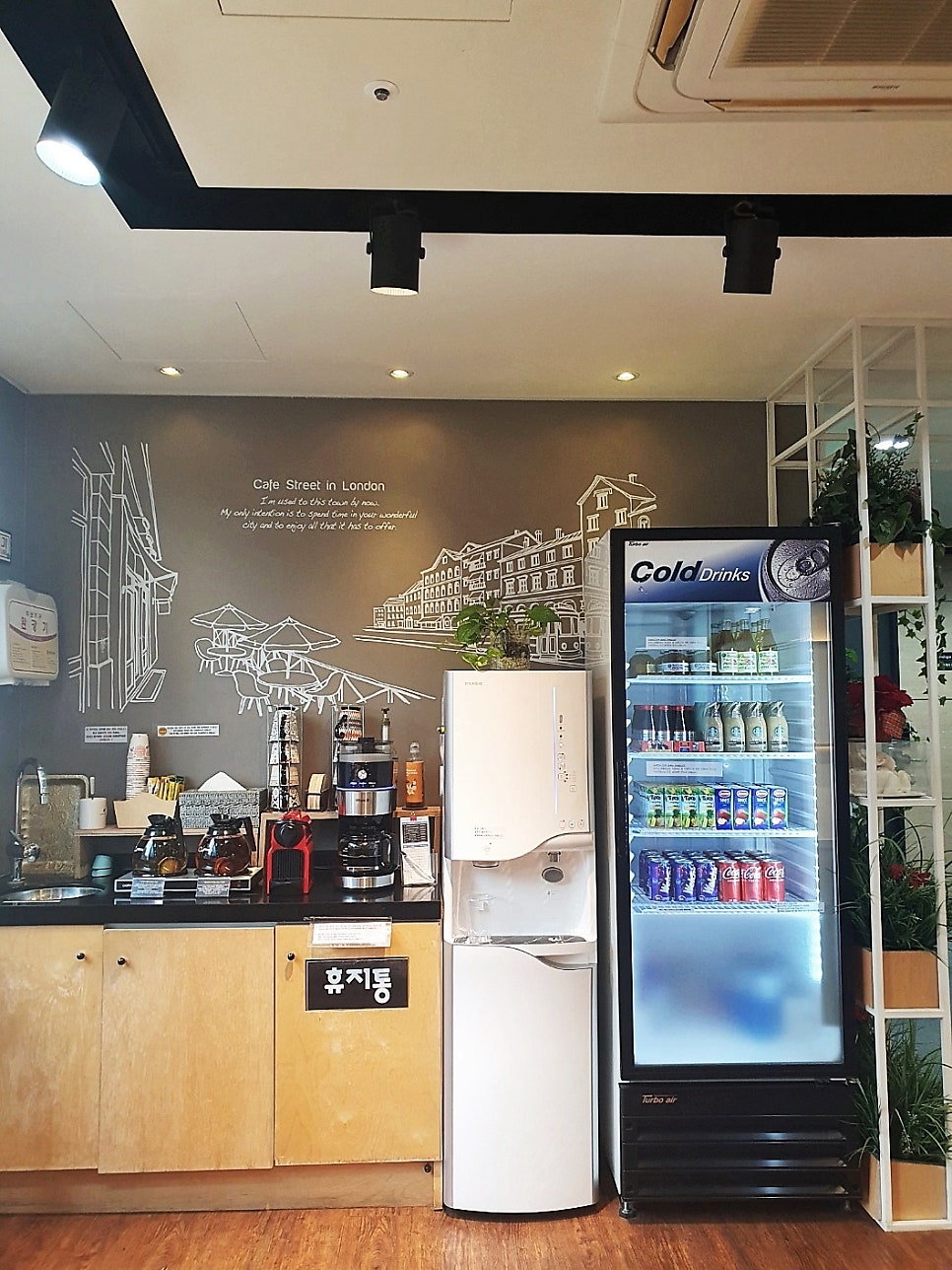 땀이나는데 커피 마시려고 외부 카페를
