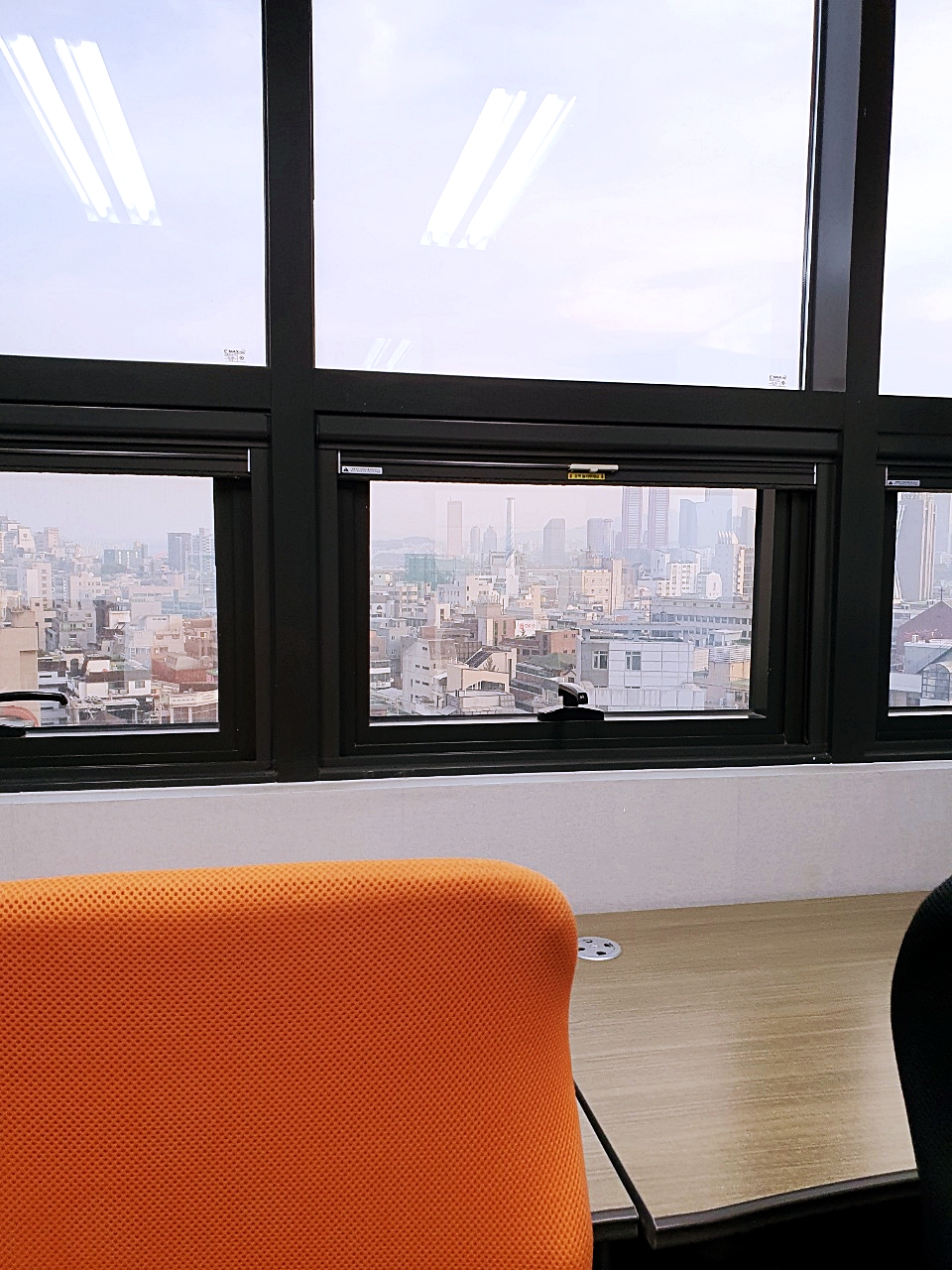 사무실에 창문들이 있어